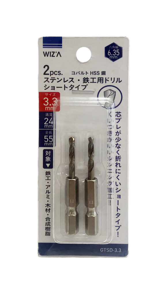 六角軸 ショート ステンレス・鉄工用ドリル 2PC 3.3mm GTSD-3.3