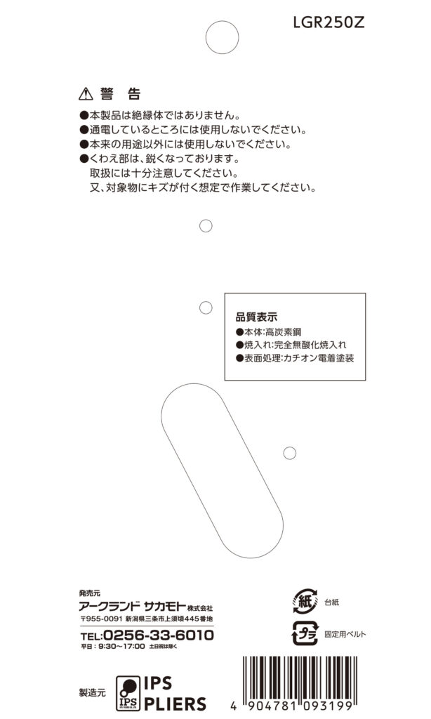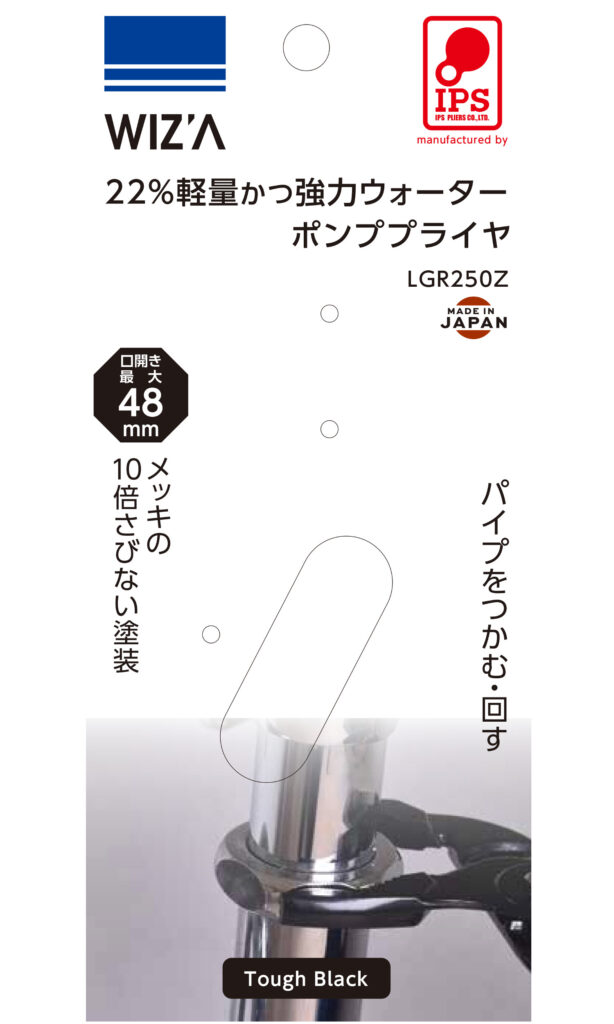 水道やガス管などの配管工事のほか、自動車整備や電気工事などの際にご利用いただくウォーターポンププライヤーです。
