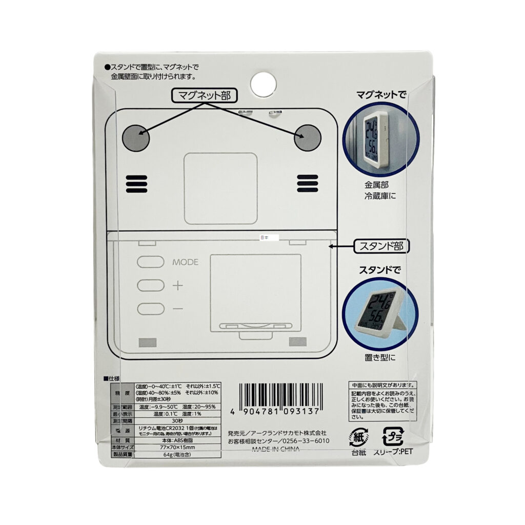 用途:室内の温度・湿度の測定や、日付・時刻を知る際に