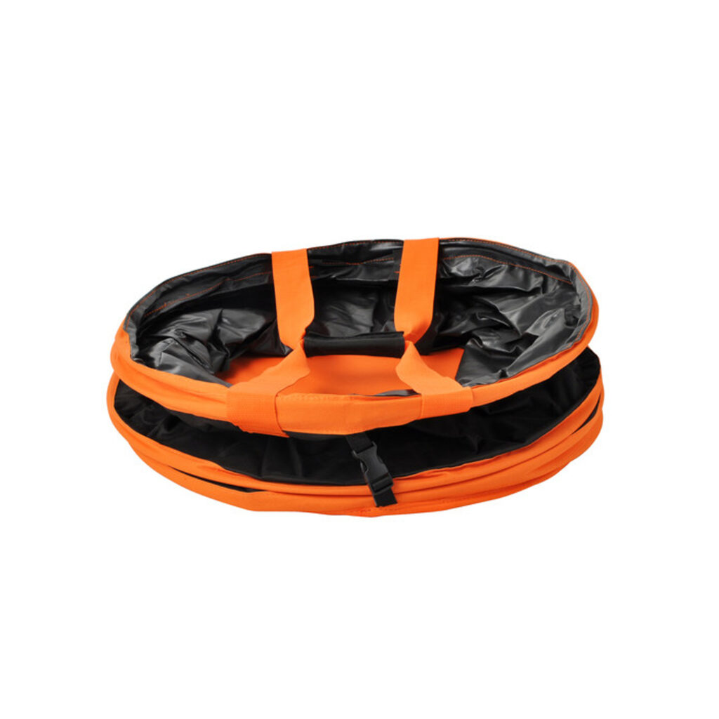 コンパクトサイズ。使わない時はたたんで、固定バックルでワンタッチロック。コンパクトサイズになり持ち運びが便利です。