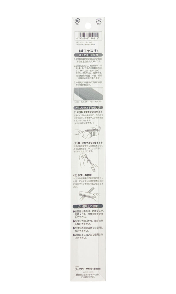鉄工ヤスリ 鉄材加工用 柄なし 角 中目 200mm 2024 8/09 WIZ'A 2024.08.09 × 鉄工ヤスリ 鉄材加工用 柄なし 角 中目 200mmブランド:WIZ'A JANコード:4904781170111商品コード:280042規格・品番:-商品サイズ(mm)縦256 x 横8 x 高さ8重さ(g)90仕様用途:鉄材等の金属加工 ヤスリ形状:角 目の粗さ:中目 巾8mm×厚さ8mm×全長256mm ハンドル無し商品コメント高品質な日本製。同じカテゴリーの商品超精密ヤスリ プラスチック用 12型 平 ステンレス用ヤスリ アルミ・合金・ステンレス材加工用 共柄 平 150mmヤスリ木柄 中 200-250mm用両刄ヤスリ ノコ刃目立用 木柄付 125mmダイヤモンド精密ヤスリ 140mm 丸 15-3細工用ヤスリ 金工用 グリップ付 8型 丸 中目 200mmダイヤモンド精密ヤスリ 140mm 三角 15-4ダイヤモンド精密ヤスリ 140mm 平 15-1 WIZ'A 鉄工ヤスリ 鉄材加工用 柄なし 半丸 中目 250mm 鉄工ヤスリ 鉄材加工用 柄なし 三角 中目 200mm