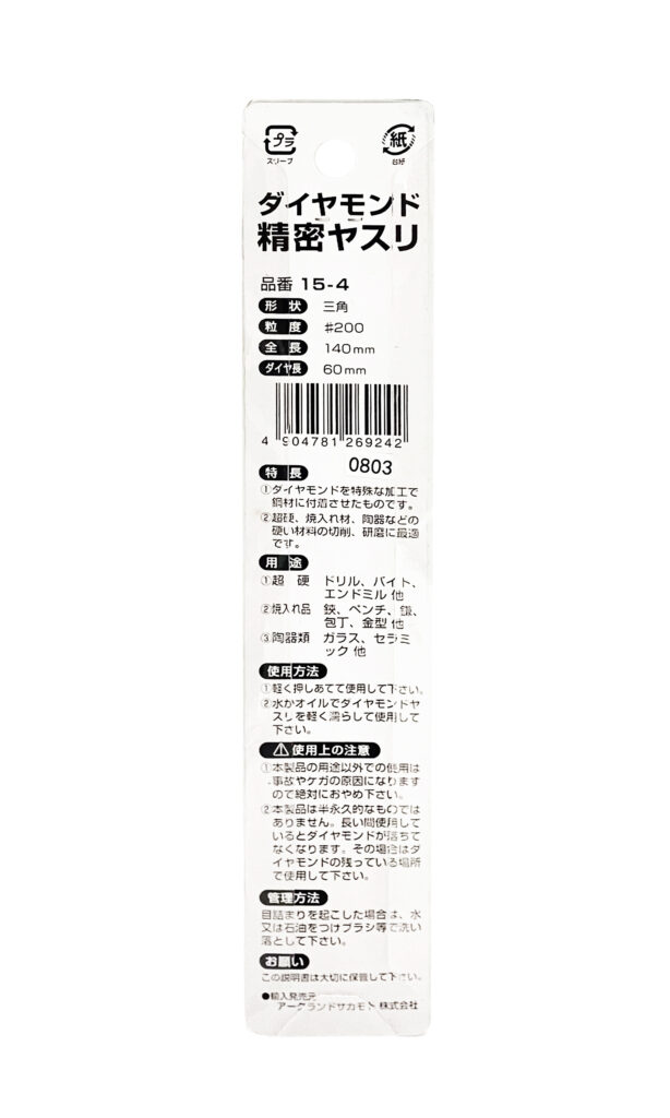 ダイヤモンド精密ヤスリ 140mm 三角 15-4 2024 8/09 WIZ'A 2024.08.09 × ダイヤモンド精密ヤスリ 140mm 三角 15-4ブランド:WIZ'A JANコード:4904781269242商品コード:281354規格・品番:-商品サイズ(mm)縦140 x 横4 x 高さ4重さ(g)8仕様用途:超硬、焼入れ品、陶器類の加工 ヤスリ形状:三角 粒度:#200 ダイヤ長:60mm商品コメント電着ダイヤモンドで剥がれにくいです。同じカテゴリーの商品軽合金ボードヤスリ 平ワイド 鬼目 150mm 細工用ヤスリ 金工用 グリップ付 12型 平 中目 170mm細工用ヤスリ 金工用 グリップ付 5型 半丸 中目 215mm細工用ヤスリ 金工用 グリップ付 8型 平 中目 200mm鉄工ヤスリ 鉄材加工用 柄なし 丸 中目 250mm竹ブラシ ミニ No.15ダイヤモンド精密ヤスリ 140mm 平 15-1ダイヤモンドヤスリ 215mm 平 17-1 WIZ'A ダイヤモンド精密ヤスリ 140mm 半丸 15-2 ダイヤモンド精密ヤスリ 180mm 半丸 16-2
