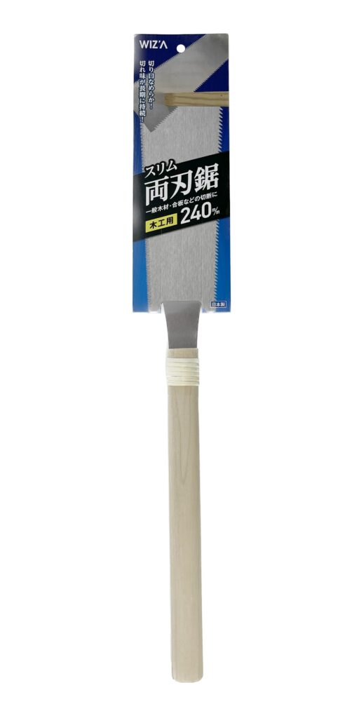スリム両刃鋸 240mm 2024 8/15 WIZ'A 2024.08.15 × スリム両刃鋸 240mm ブランド:WIZ'A JANコード:4904781090655商品コード:101001規格・品番: 商品サイズ(mm)縦610 x 横90 x 高さ32重さ(g)200仕様用途:一般木工、合板の切断 サイズ:240mm 横挽目縦挽目の両刃仕様商品コメントなめらかな切口です。同じカテゴリーの商品替刃式折込鋸210mm竹挽鋸 240mm NT-240剪定鋸 240mm NS-240ミニ突廻鋸 100mm糸のこ 替刃 28山 細目 薄い木材用 5枚マルチキング用替刃 1本入 GTMK-240糸のこ 替刃 24山 軽金属用 5枚入りバイメタルキング 金属も切れる鋸 WZ-BK260 WIZ'A スリム両刃鋸 210mm 替刃式折込鋸210mm