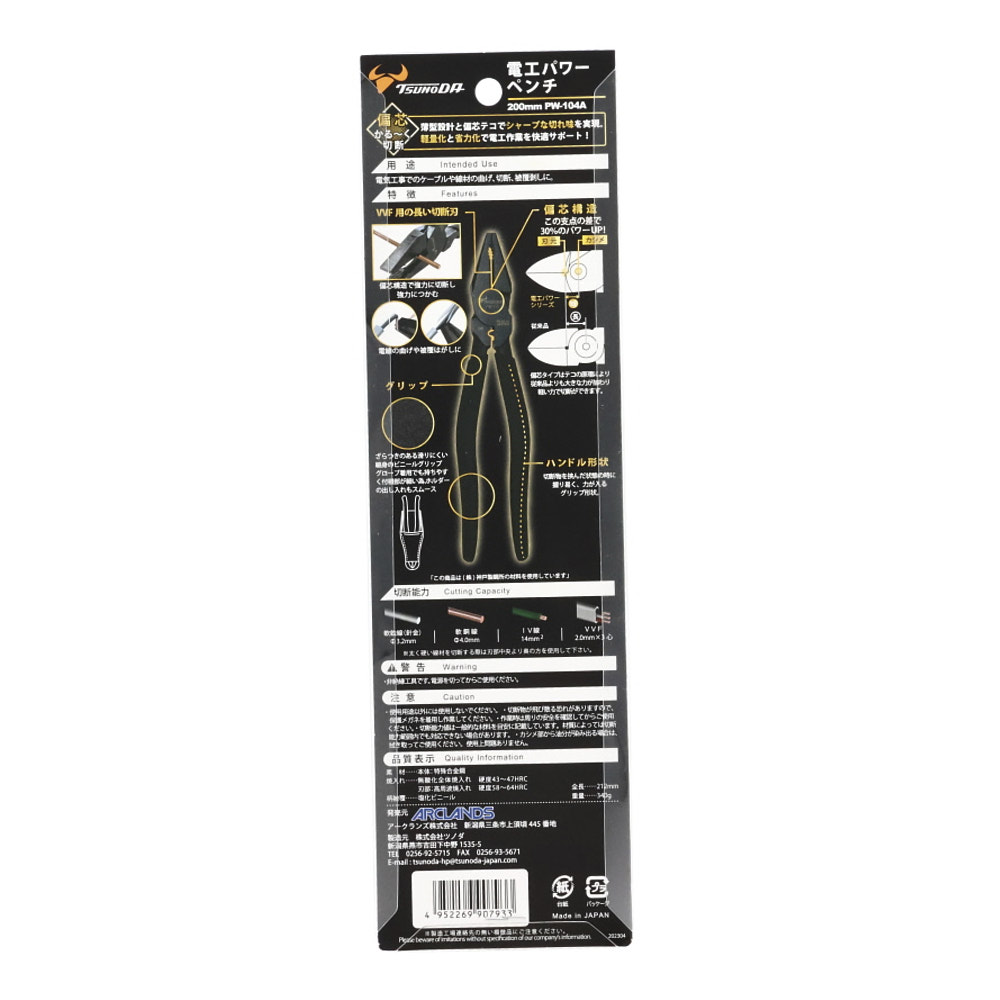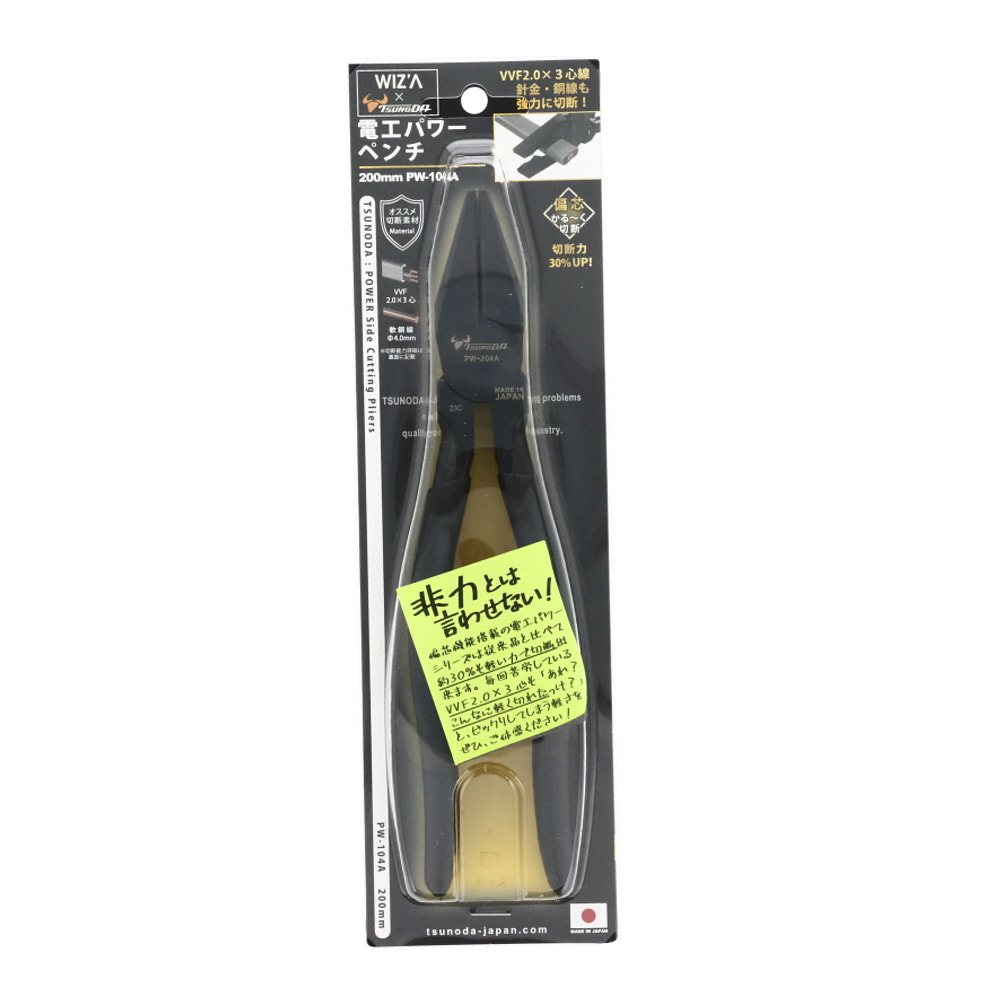 電工パワーペンチ 200mm PW-104A 2024 8/15 WIZ'A 2024.08.15 × 電工パワーペンチ 200mm PW-104Aブランド:WIZ'A JANコード:4952269907933商品コード:233441規格・品番:PW-104A 商品サイズ(mm)縦212 x 横42 x 高さ12重さ(g)340仕様用途:ケーブル線、線材の切断 偏芯タイプで切断力UP商品コメントカシメ部を下に付けて軽い力で切断。同じカテゴリーの商品電工Fペンチ 220mm DF-220A 電工Fペンチ 165mm DF-165A パワー先曲万能ラジオペンチ 150mm GTBR-150P電工パワーペンチ 175mm PW-103AWIZA ブラック強力ニッパ125mm WIZA ブラックラジオペンチ125mmパワー万能ラジオペンチ 150mm GTR-150P電工パワーニッパー強力刃 200mm PW-324A WIZ'A 電工パワーペンチ 175mm PW-103A 電工パワー万能ペンチ200mm PW-114A