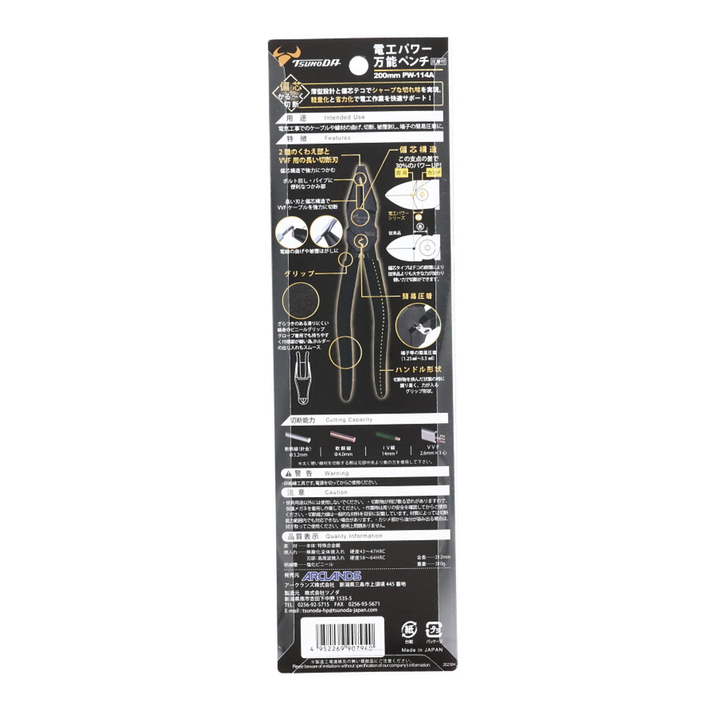 電工パワー万能ペンチ200mm PW-114A 2024 8/15 WIZ'A 2024.08.15 × 電工パワー万能ペンチ200mm PW-114Aブランド:WIZ'A JANコード:4952269907940商品コード:233442規格・品番:PW-114A 商品サイズ(mm)縦212 x 横48 x 高さ12重さ(g)310仕様用途:ケーブル線、線材の切断、簡易圧着 偏芯タイプで切断力UP商品コメントカシメ部を下に付けて軽い力で切断。同じカテゴリーの商品電工Fペンチ 195mm DF-195Aロングノーズプライヤー 280mm GTLP-280S電工Fペンチ 220mm DF-220A パワーペンチ 圧着式 200mm GTP-200PWIZA ブラックラジオペンチ125mmWIZA ブラック強力ニッパ125mm ロングノーズプライヤー スプリング付 150mm WZLP-150F電工パワーペンチ 200mm PW-104A WIZ'A 電工パワーペンチ 200mm PW-104A 電工パワー万能ペンチ225mm PW-115A