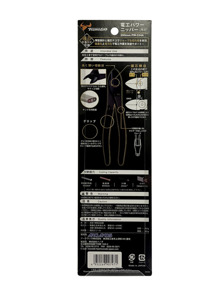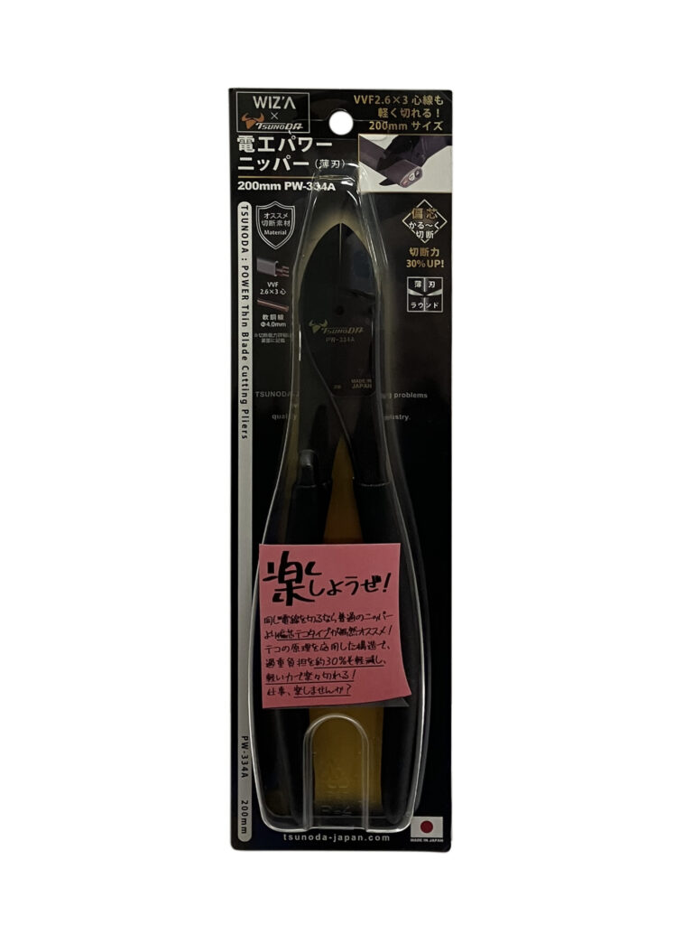 電工パワーニッパー薄刃 200mm PW-334A 2024 8/15 WIZ'A 2024.08.15 × 電工パワーニッパー薄刃 200mm PW-334Aブランド:WIZ'A JANコード:4952269907971商品コード:233445規格・品番:PW-334A 商品サイズ(mm)縦207 x 横47 x 高さ12重さ(g)265仕様用途:ケーブル線、線材の切断、簡易圧着 偏芯タイプで切断力UP商品コメントカシメ部を下に付けて軽い力で切断。同じカテゴリーの商品WIZA ブラックペンチ150mm マイクロペンチ 125mm GTP-125Mパワーペンチ 圧着式 175mm GTP-175P電工パワーニッパー強力刃 200mm PW-324AWIZA ブラックラジオペンチ150mm電工Fペンチ 220mm DF-220A マイクロペンチ スプリング付 WZP-125F電工パワー万能ペンチ200mm PW-114A WIZ'A 電工パワーニッパー薄刃 160mm PW-332A 電工パワーニッパー薄刃 225mm PW-305A