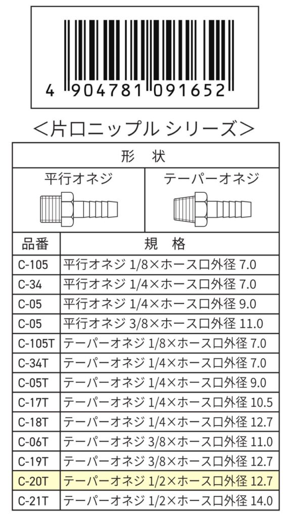 片口ニップル 12.7mm R1/2 C-2T