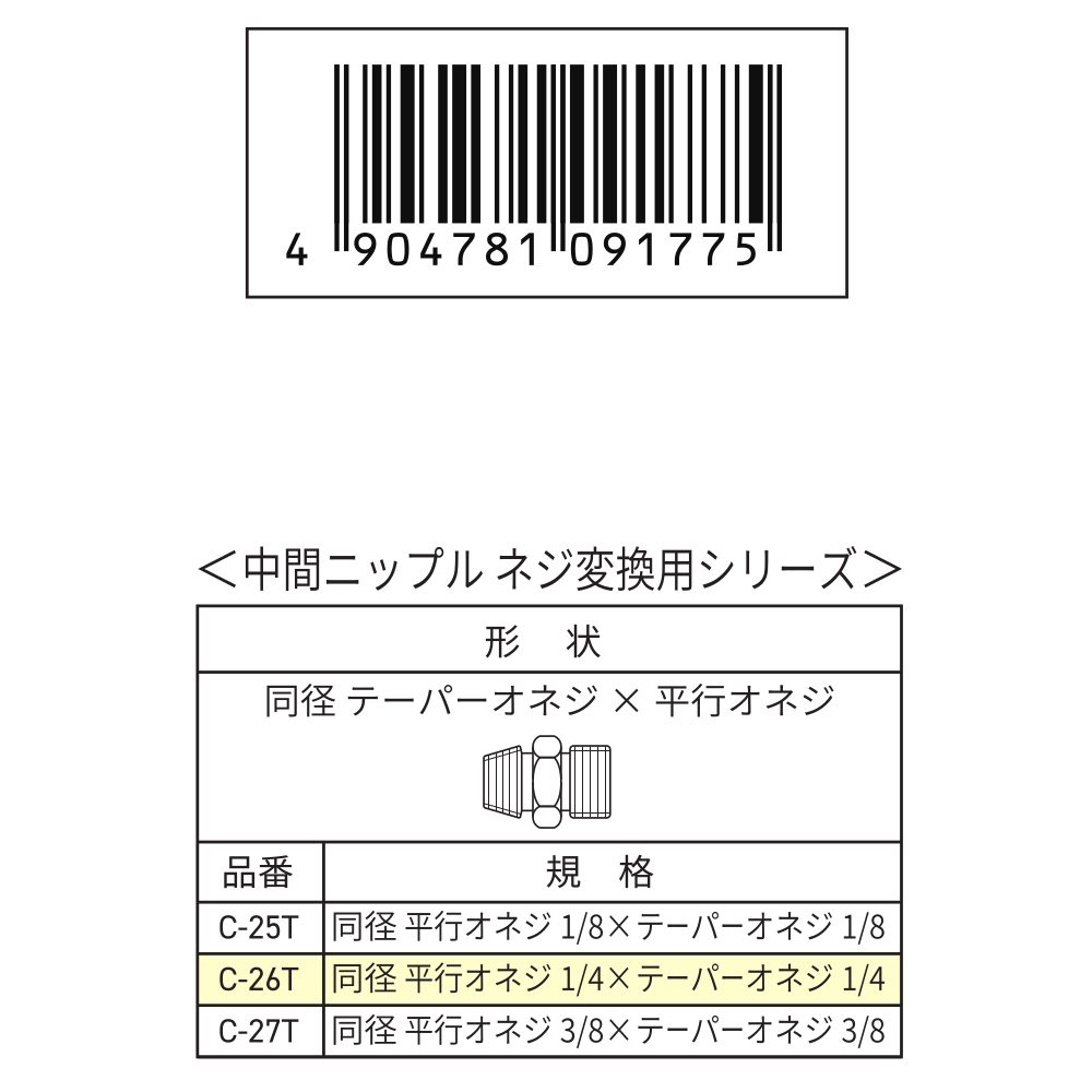 中間ニップル ネジ交換用 R1/4×G1/4 C-26T
