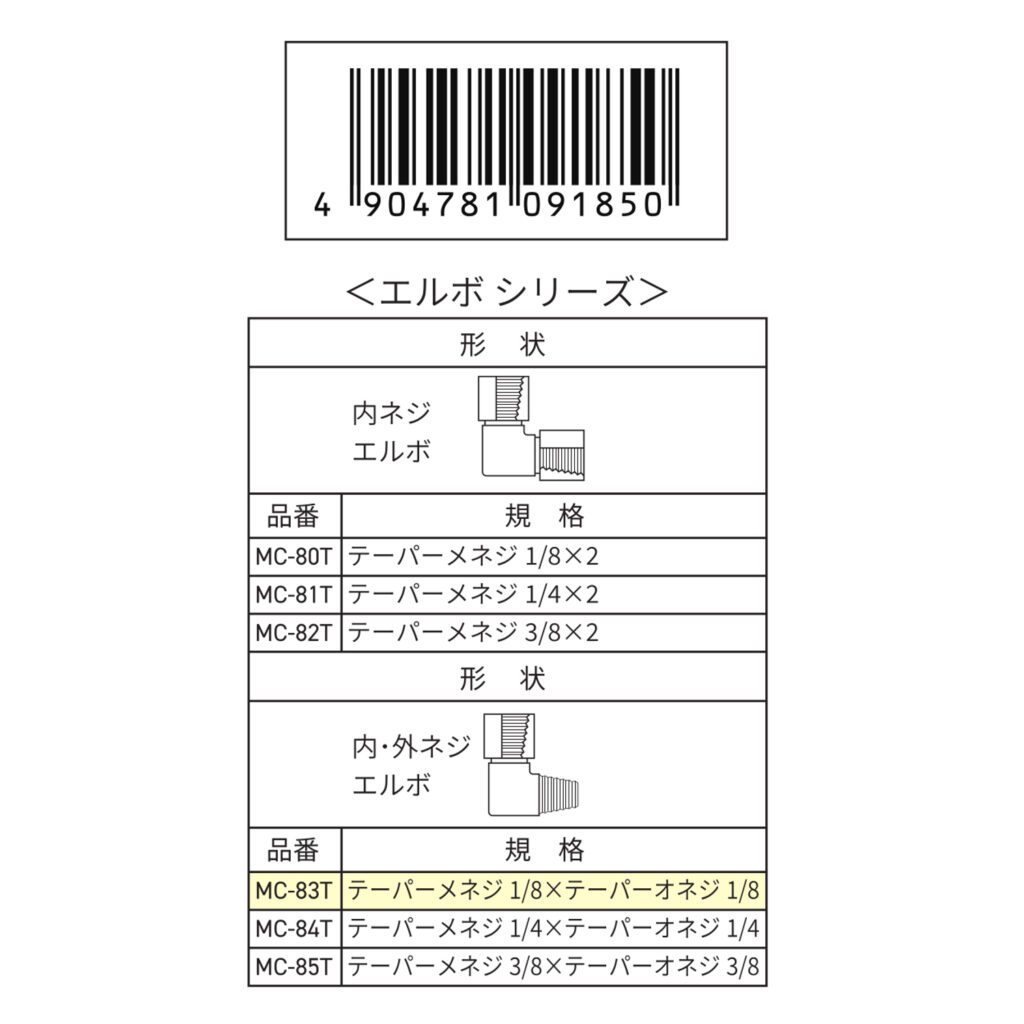 エルボ 内・外ネジ Rc1/8×R1/8 MC-83T