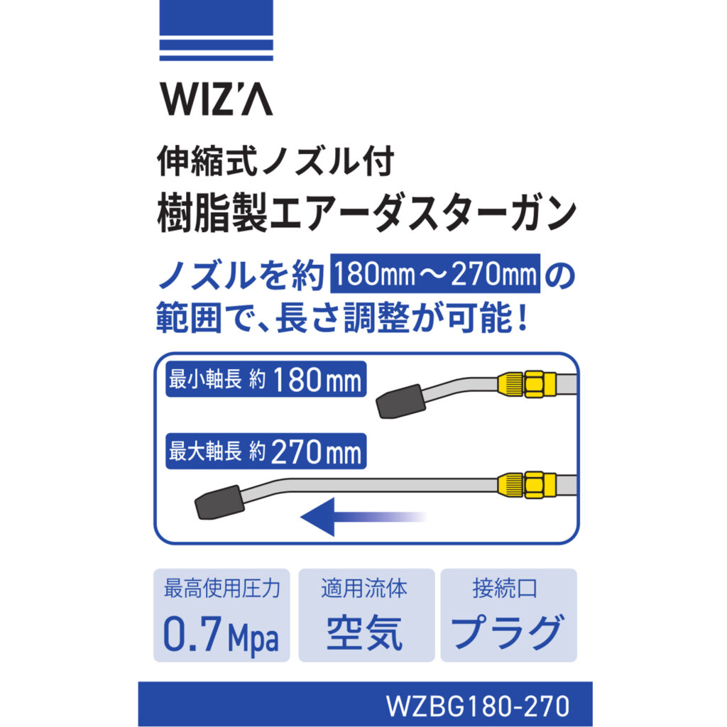 伸縮式ノズル付樹脂製エアーダスターガン WZBG180-270