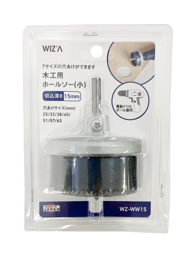 木工ホールソー 小 25mm~64mm 15mm WZ-WW152563