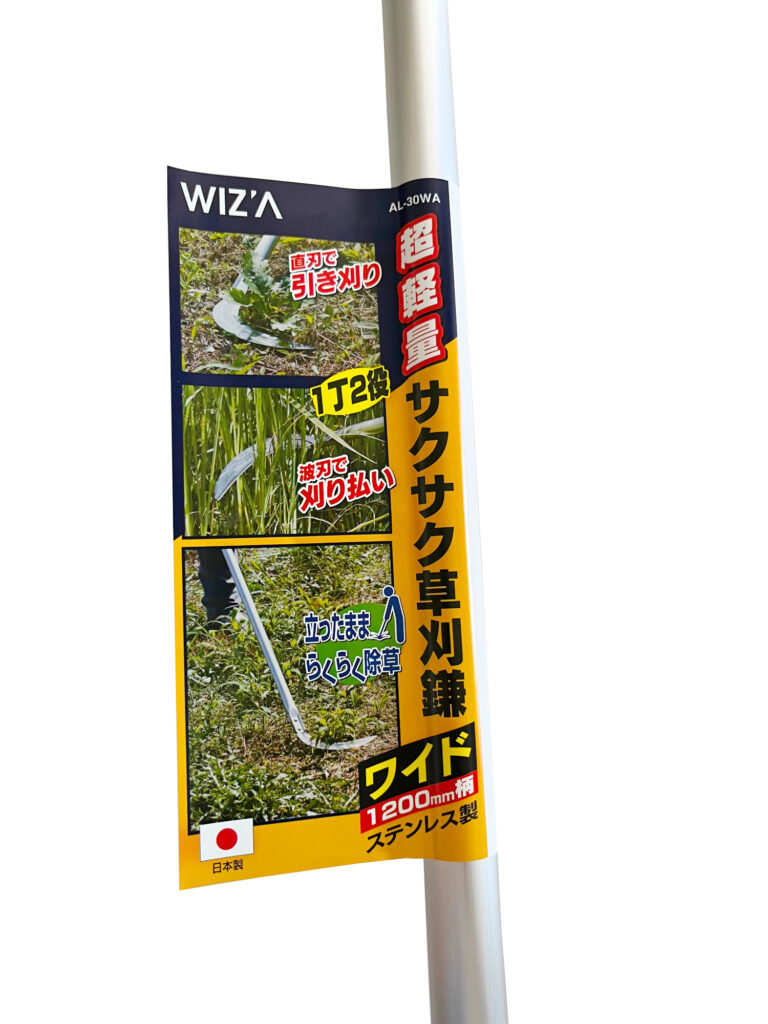 超軽量 サクサク草刈鎌 ワイド 1200mm柄 ALー3WA 2024 9/12 WIZ'A 2024.09.12 × 超軽量 サクサク草刈鎌 ワイド 1200mm柄 ALー3WA ブランド:WIZ'A JANコード:4904781682980商品コード:720124規格・品番:ALー3WA 商品サイズ(mm)縦1,320 x 横195 x 高さ78重さ(g)-仕様用途:立ったまま草刈り、草削りが出来る 刃渡り:195mm商品コメント柄が長いので、態勢が楽に作業出来ます。同じカテゴリーの商品ネジリ鎌 左利き用刈払草刈鎌 中厚鎌 195mm×540mmワンタッチ草抜き ロング刃 80mm WTー2LA 2段伸縮柄 草刈ピーラー ワイド AL-40WSA片刃中厚鎌 鋼付 180mm鋸鎌 普通目カット鎌 鋼付 両刃中厚鎌 180mm 安来鋼青紙 WIZ'A ハンドルがはずせる ポット 16cm 激強ペン先マーカー 中字 レッド WZPM-RE