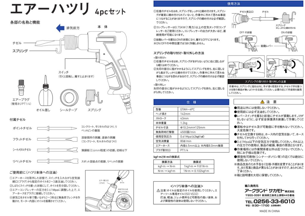 付属チゼル:ポイント、フラット、シートメタル、リベットチゼル