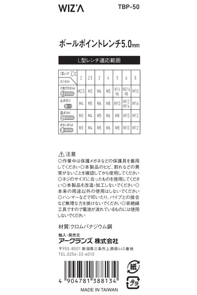 T型ボールポイントレンチ 5.0mm TBP-50 2024 8/15 WIZ'A 2024.08.15 × T型ボールポイントレンチ 5.0mm TBP-50 ブランド:WIZ'A JANコード:4904781388134商品コード:478138813規格・品番:TBP-50商品サイズ(mm)縦206 x 横110 x 高さ18重さ(g)84仕様用途:六角穴付きボルトの締付け、緩め 約25度傾けて回せる商品コメントT型グリップで力が入りやすいです。同じカテゴリーの商品T型ボールポイントレンチ 4.0mm TBP-40 六角棒レンチセット 8PC インチ GTHW-03スタビーオフセットラチェットドライバーセット 7PC WZ-SOF73.7V充電式電工ドライバ- ブラック WZ-MDV3.7BKラチェットドライバー (+-セット)ヘックスローブ いじり止め L型レンチカラーリング付セット 9本組 GTHX-90T型へクスローブレンチ TT-10T型ボールポイントレンチ 2.5mm TBP-25 WIZ'A T型ボールポイントレンチ 4.0mm TBP-40 T型ボールポイントレンチ 6.0mm TBP-60