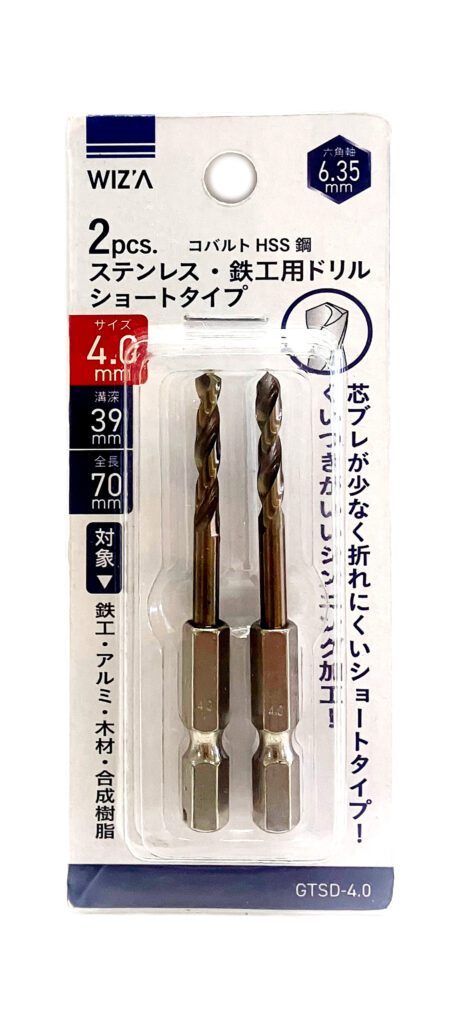 六角軸 ショート ステンレス・鉄工用ドリル 2PC 4.0mm GTSD-4.0