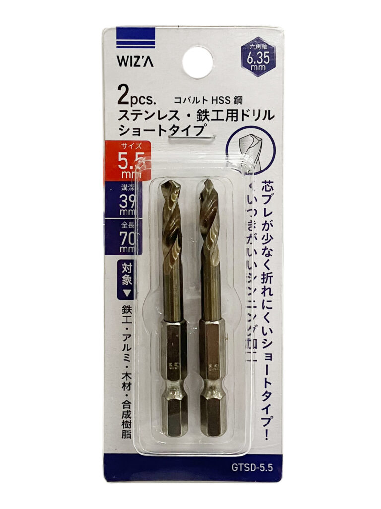 六角軸 ショート ステンレス・鉄工用ドリル 2PC 5.5mm GTSD-5.5