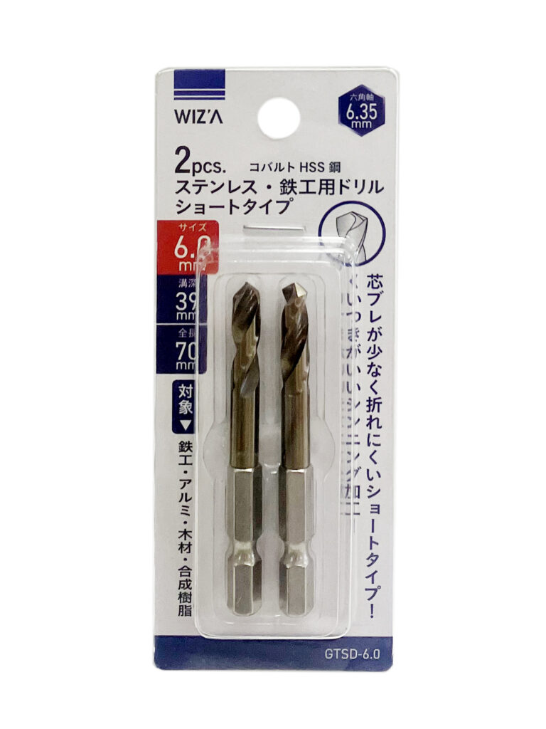 六角軸 ショート ステンレス・鉄工用ドリル 2PC 6.0mm GTSD-6.0
