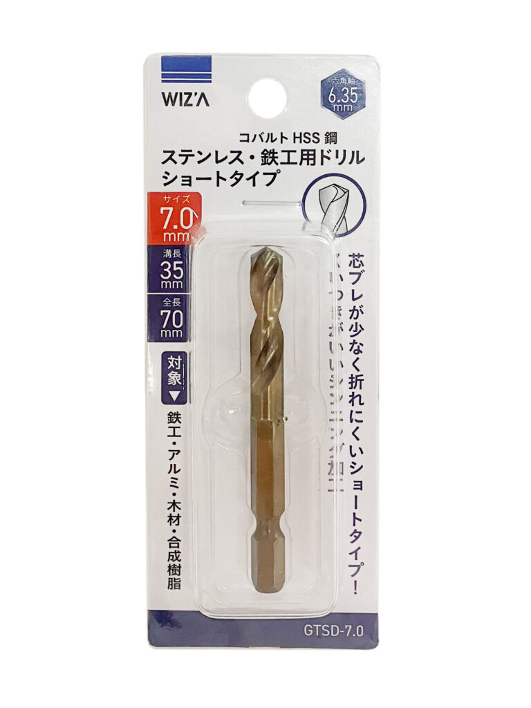六角軸 ショート ステンレス・鉄工用ドリル 7.0mm GTSD-7.0