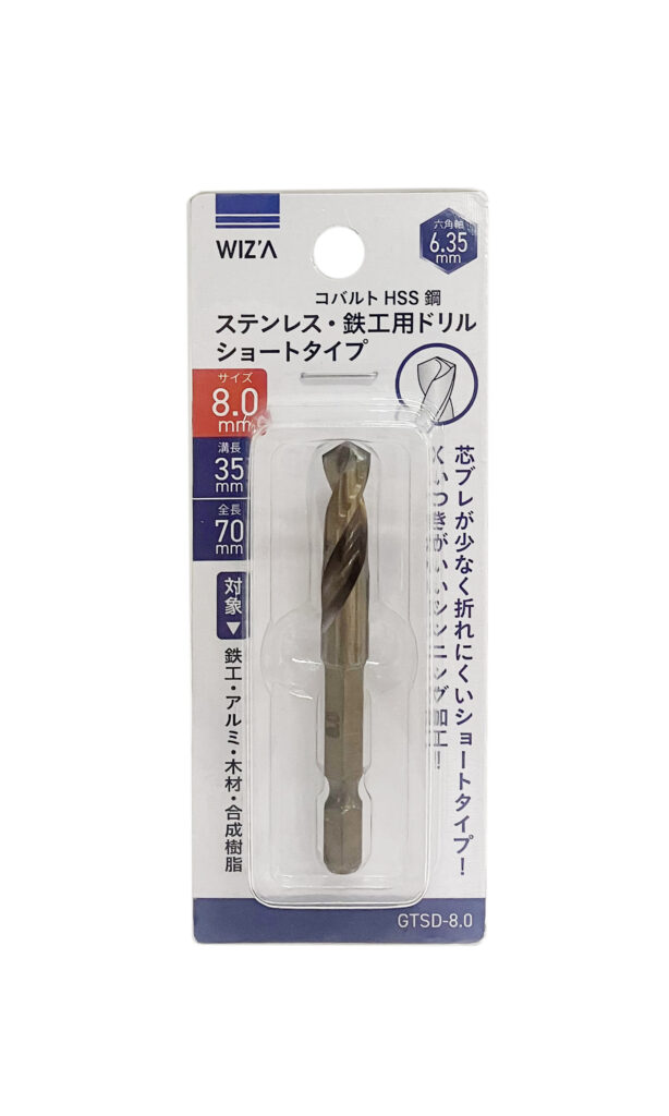 六角軸 ショート ステンレス・鉄工用ドリル 8.0mm GTSD-8.0