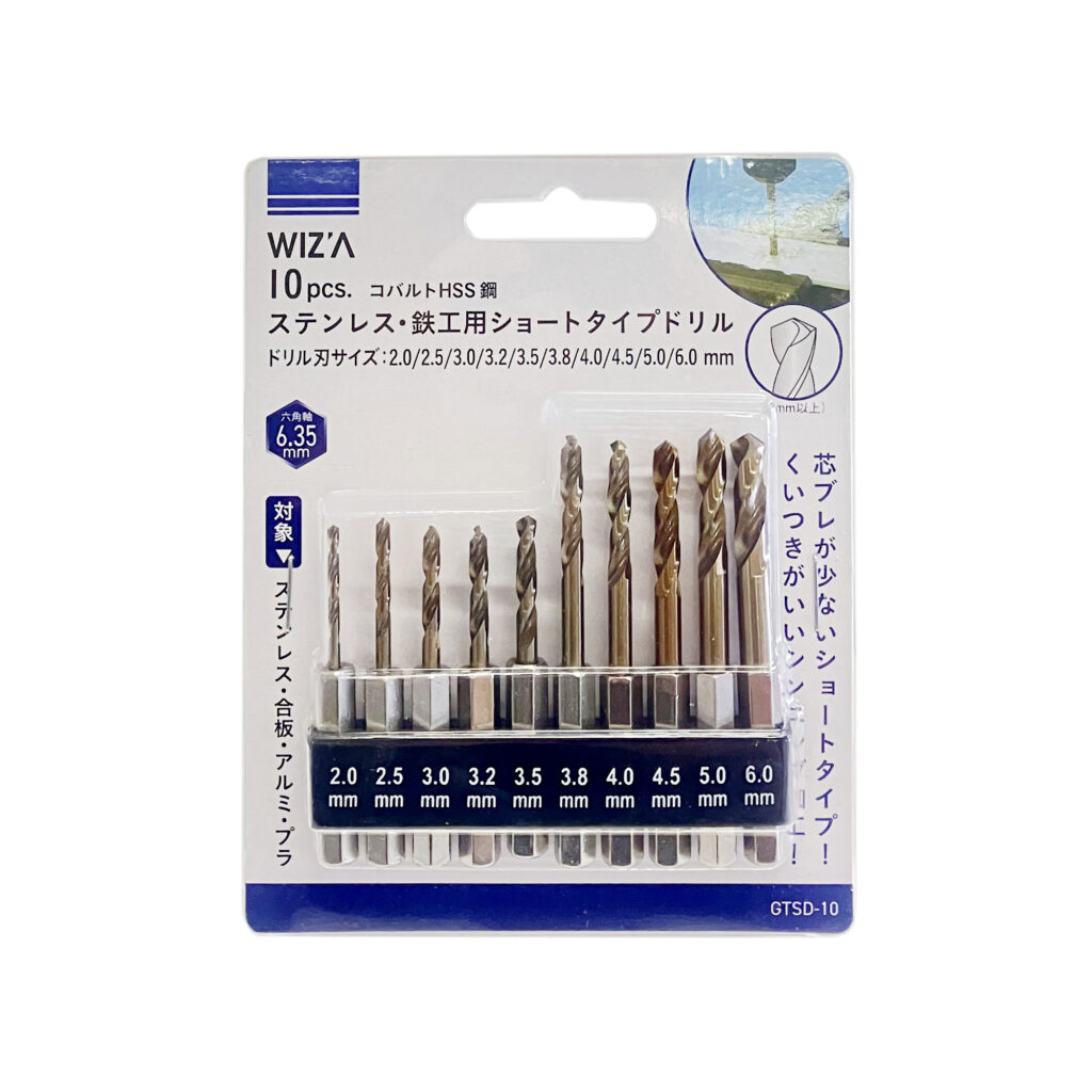 六角軸 ショート ステンレス・鉄工用ドリル 10PC GTSD-10