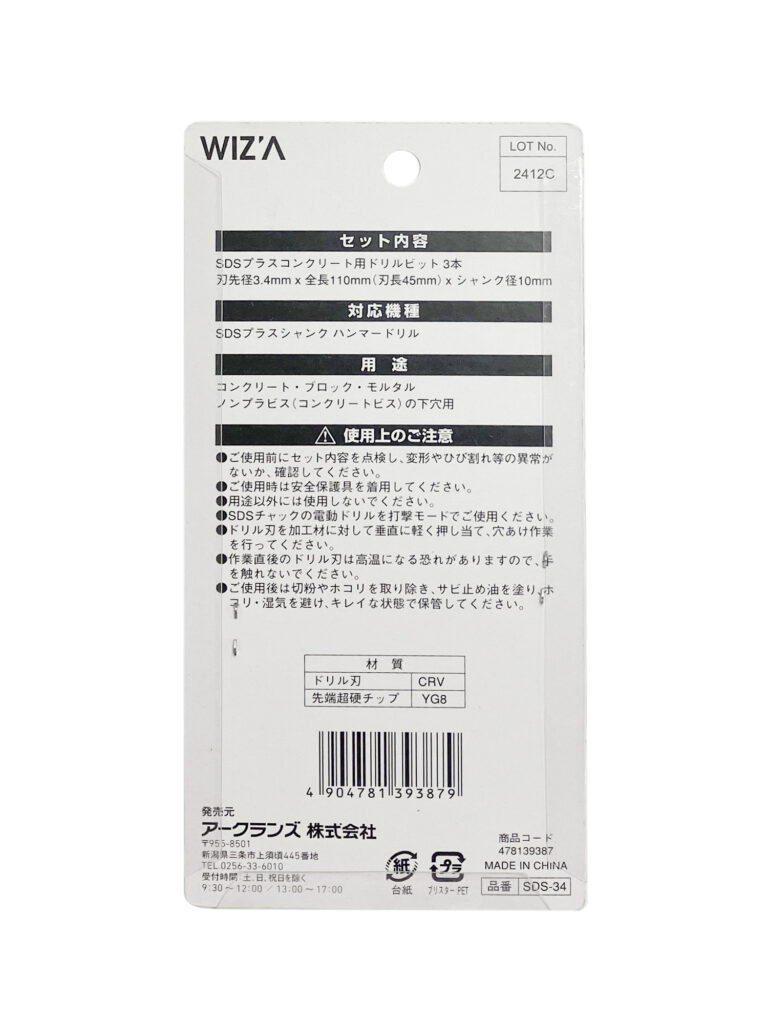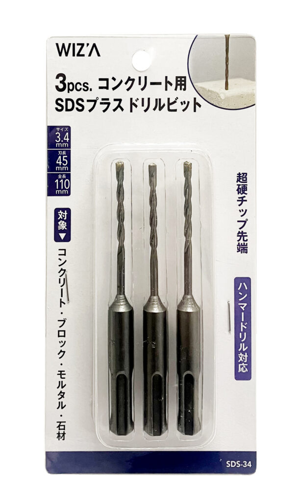 3PC SDSプラス ドリルビット 3.4mm SDS-34
