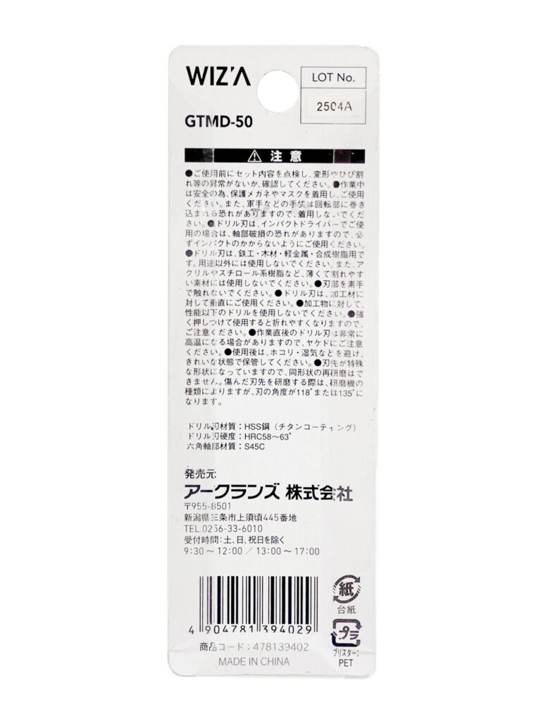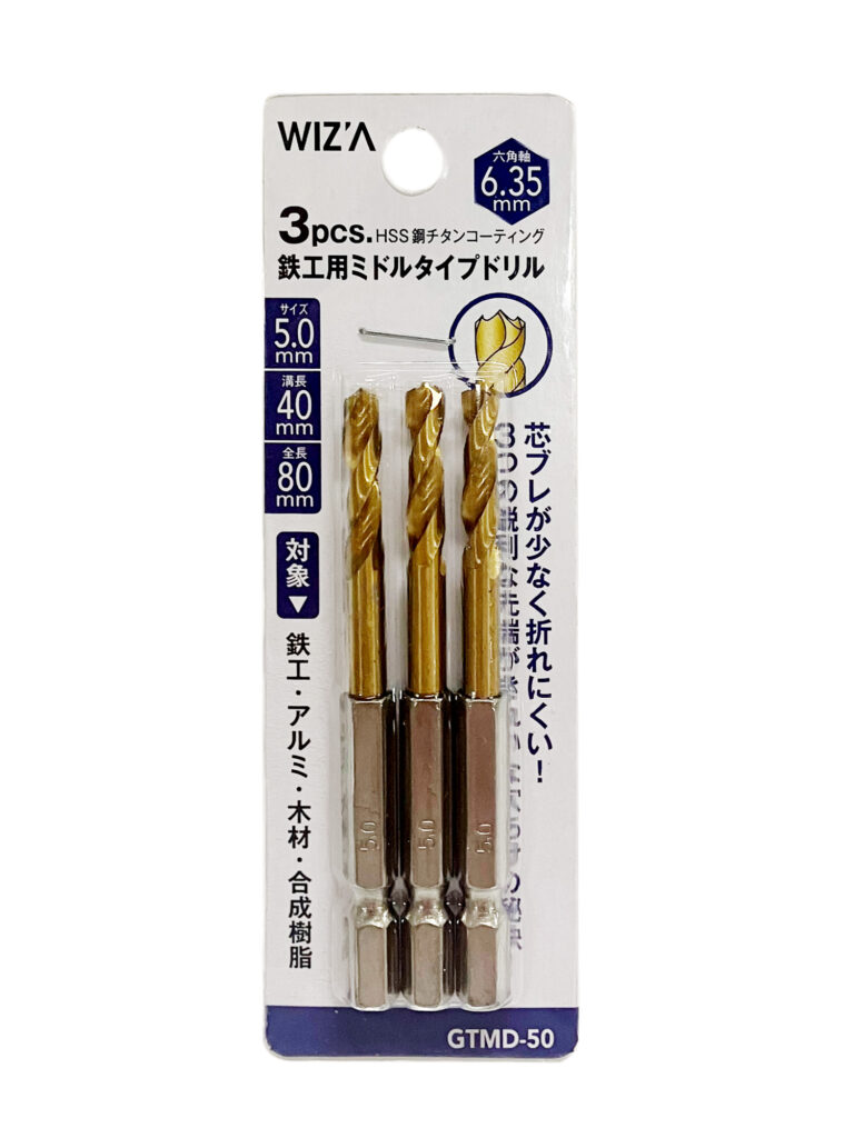 六角軸 鉄工用チタンドリル ミドルサイズ 3PC 5.0mm GTMD-50