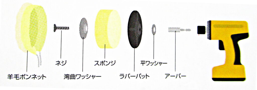 セット内容:ラバーパット、スポンジポリッシャー、羊毛ボンネット