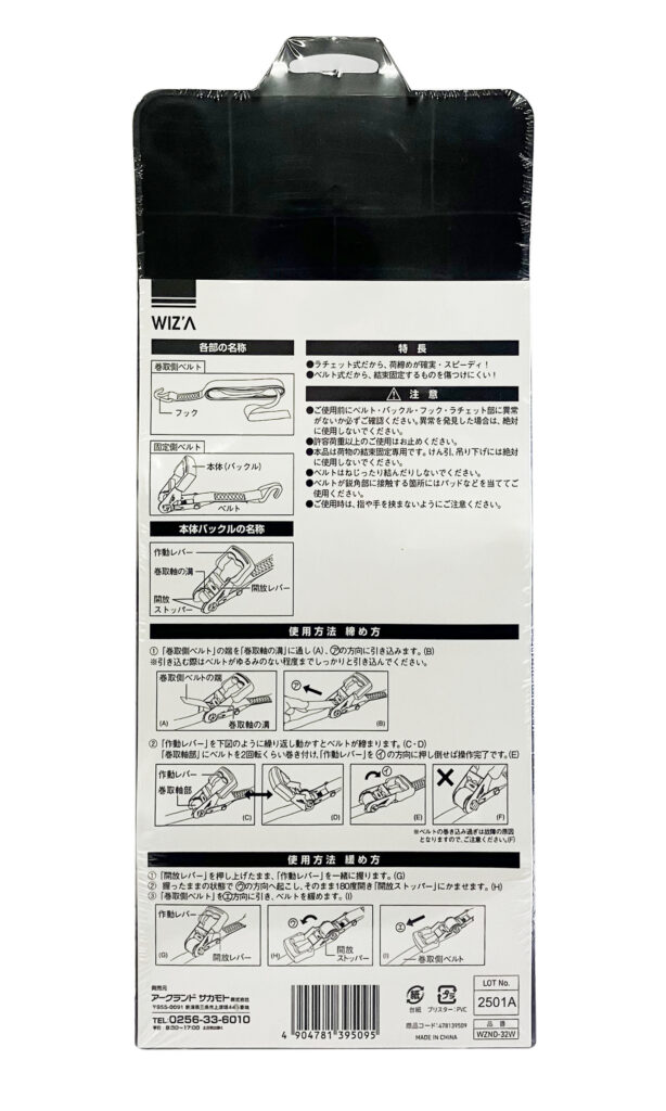 ベルト荷締機 ラチェット式 2PC ケース付き 32mm×5m WZND-32W