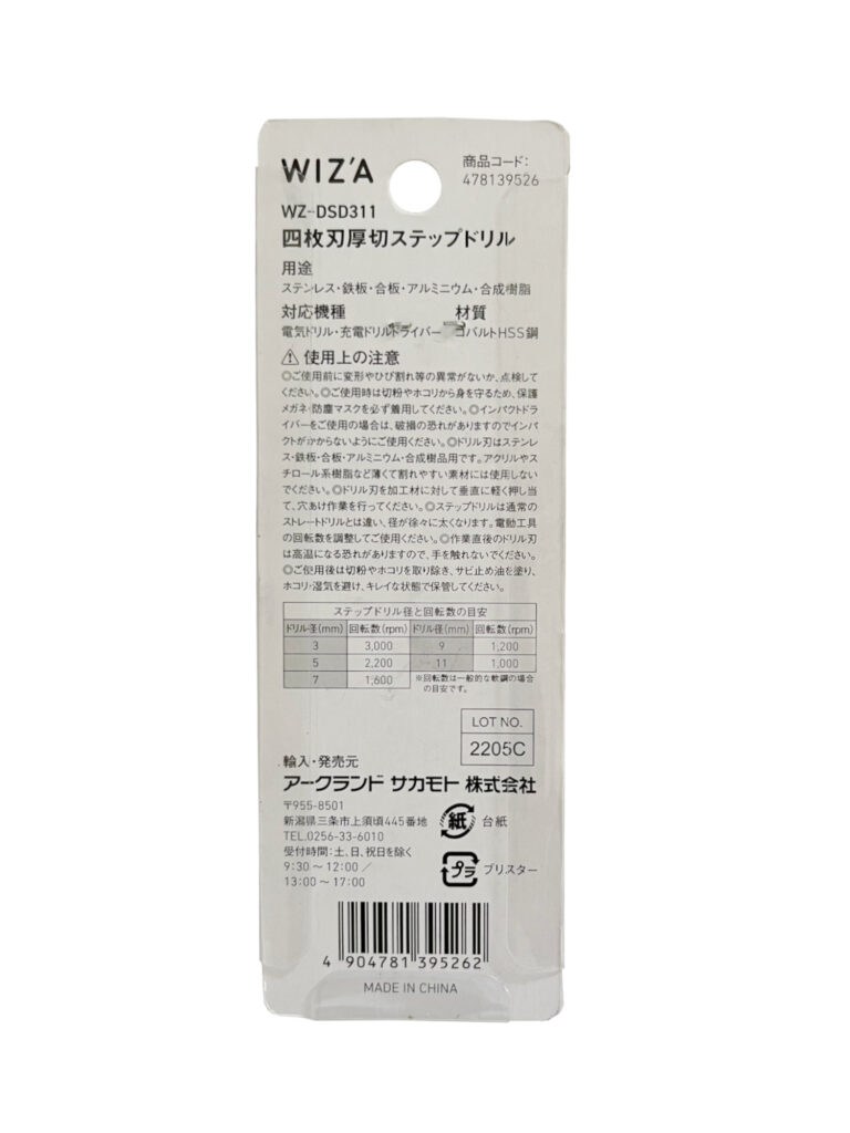 ステップドリル 四枚刃厚切 5段 WZ-DSD311