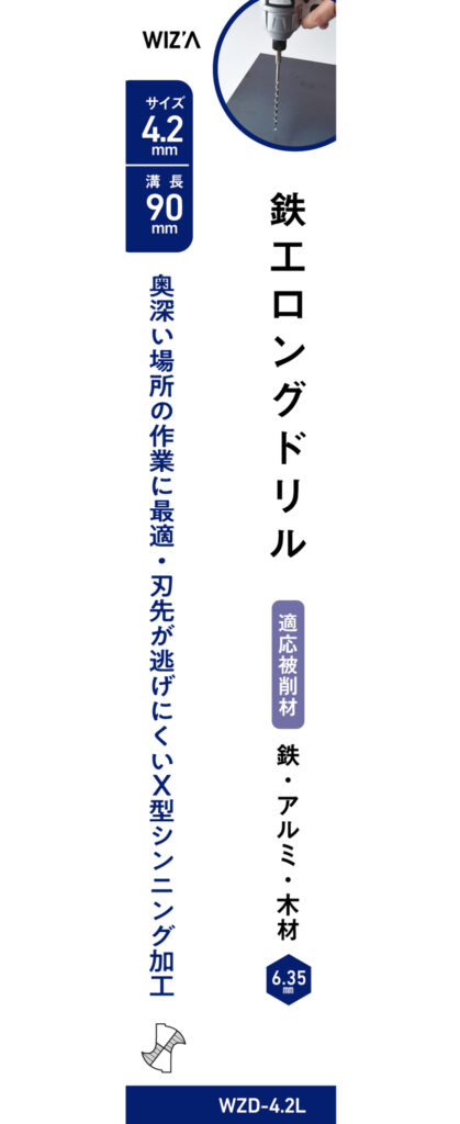 六各軸 鉄工用ロングドリル 4.2mm WZD-4.2L 2024 9/05 WIZ'A 2024.09.05 × 六各軸 鉄工用ロングドリル 4.2mm WZD-4.2Lブランド:WIZ'A JANコード:4904781396597商品コード:478139659規格・品番:WZD-4.2L商品サイズ(mm)縦150 x 横6 x 高さ6重さ(g)16仕様用途:鉄、アルミ、銅、木材の穴あけ ドリル刃径:4.2mm 全長:150mm 刃長:90mm商品コメント奥まった所の穴あけ、深い穴あけの時に使います。同じカテゴリーの商品六各軸 鉄工用ロングドリル 2.0mm WZD-2.0L六角軸 鉄工用ドリル 10.0mm WZ-7ID-10.0六角軸 5枚刃面取りカッター 鉄工用 8mm WZ-CS8ステップドリル 四枚刃 12段 WZ-FS42612六角軸 鉄工用チタンドリル ミドルサイズ 3PC 4.5mm GTMD-45六角軸 鉄工用チタンドリル ミドルサイズ 3PC 3.2mm GTMD-32カラービット&木工ドリルセット 10PC WZ-BWW10六角軸 鉄工用チタンドリル ミドルサイズ 3PC 3.5mm GTMD-35 WIZ'A 六各軸 鉄工用ロングドリル 4.0mm WZD-4.0L 六各軸 鉄工用ロングドリル 4.5mm WZD-4.5L
