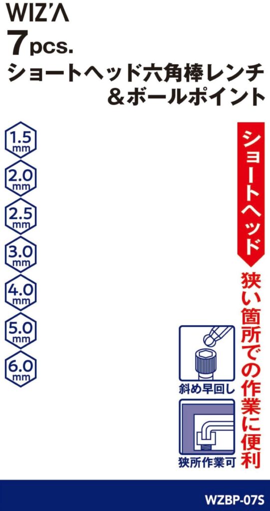 ショートヘッド六角棒レンチ&ボールポイント 7PC WZBP-07S