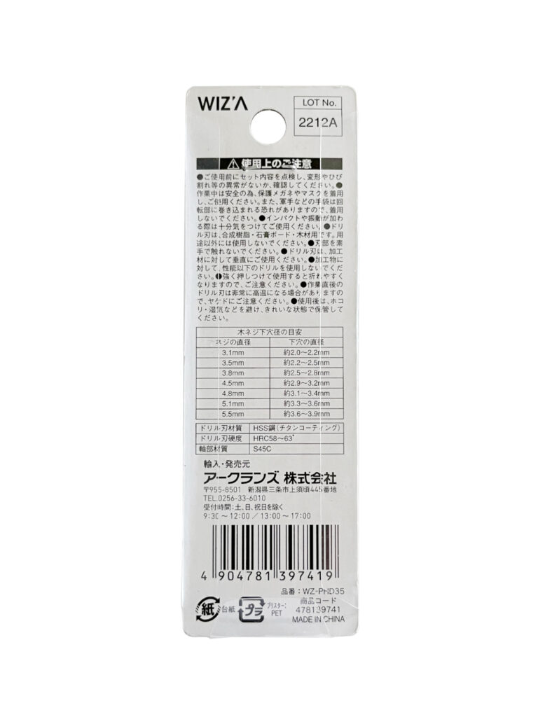 六角軸 下穴ドリル 3.5mm 2PC WZ-PHD35 2024 9/05 WIZ'A 2024.09.05 × 六角軸 下穴ドリル 3.5mm 2PC WZ-PHD35ブランド:WIZ'A JANコード:4904781397419商品コード:478139741規格・品番:WZ-PHD35商品サイズ(mm)縦6.35 x 横9 x 高さ6.35重さ(g)22仕様用途:木材の下穴、穴あけ ドリル刃径:3.5mm HSS鋼 チタンコーティング商品コメントビス打ち前の下穴あけ用ドリルです。同じカテゴリーの商品木工用ショートビット 10.5mm GTST-105木工用極短ドリルビット セット 5本入り WZGM-5S六角軸 テーパー下穴錐 5.0mm R-5木工用ショートビットセット 5PC WDS-05木工用ショートビット 7.0mm GTST-7木工用ショートビット 12.0mm GTST-12木工用ショートビット 5.0mm GTST-5木工用ショートビット 13.5mm GTST-135 WIZ'A 六角軸 下穴ドリル 3.0mm 2PC WZ-PHD30 六角ビットセット ブラック 65mm 7PC WZH-7-65