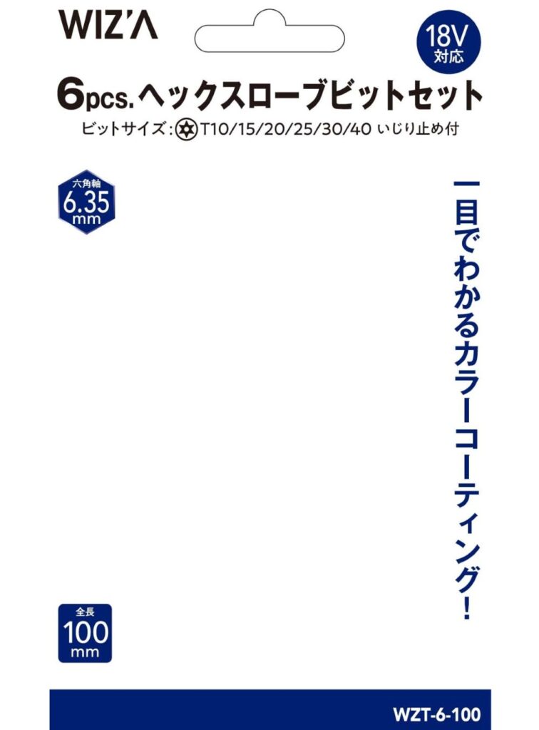 ヘックスローブビットセット グリーン 100mm 6PC WZT-6-100