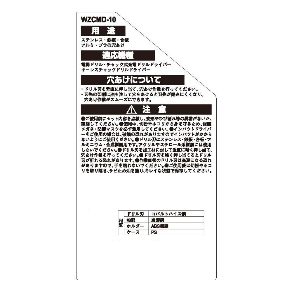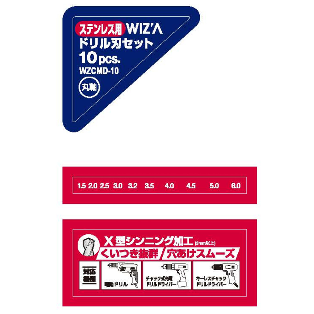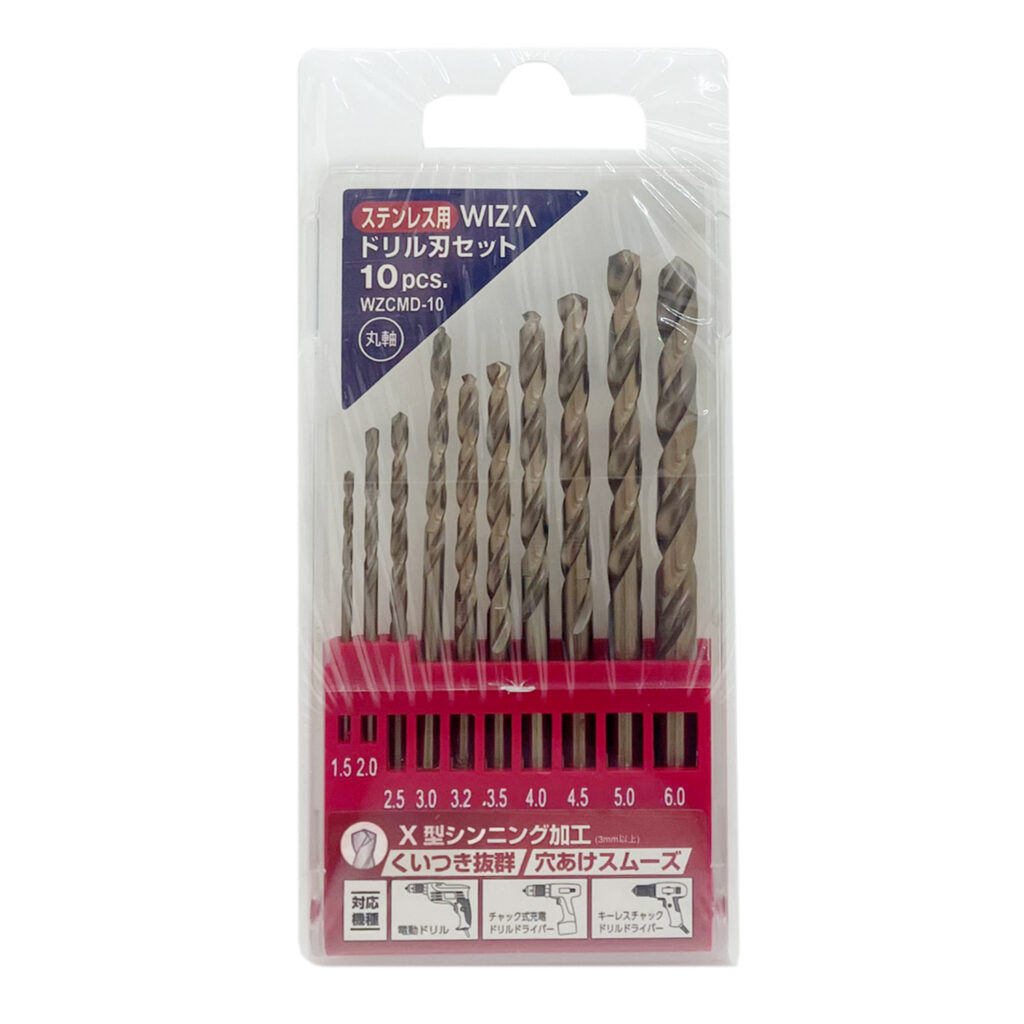 ステンレス用コバルトドリル刃セット 10PC 丸軸 WZCMD-10