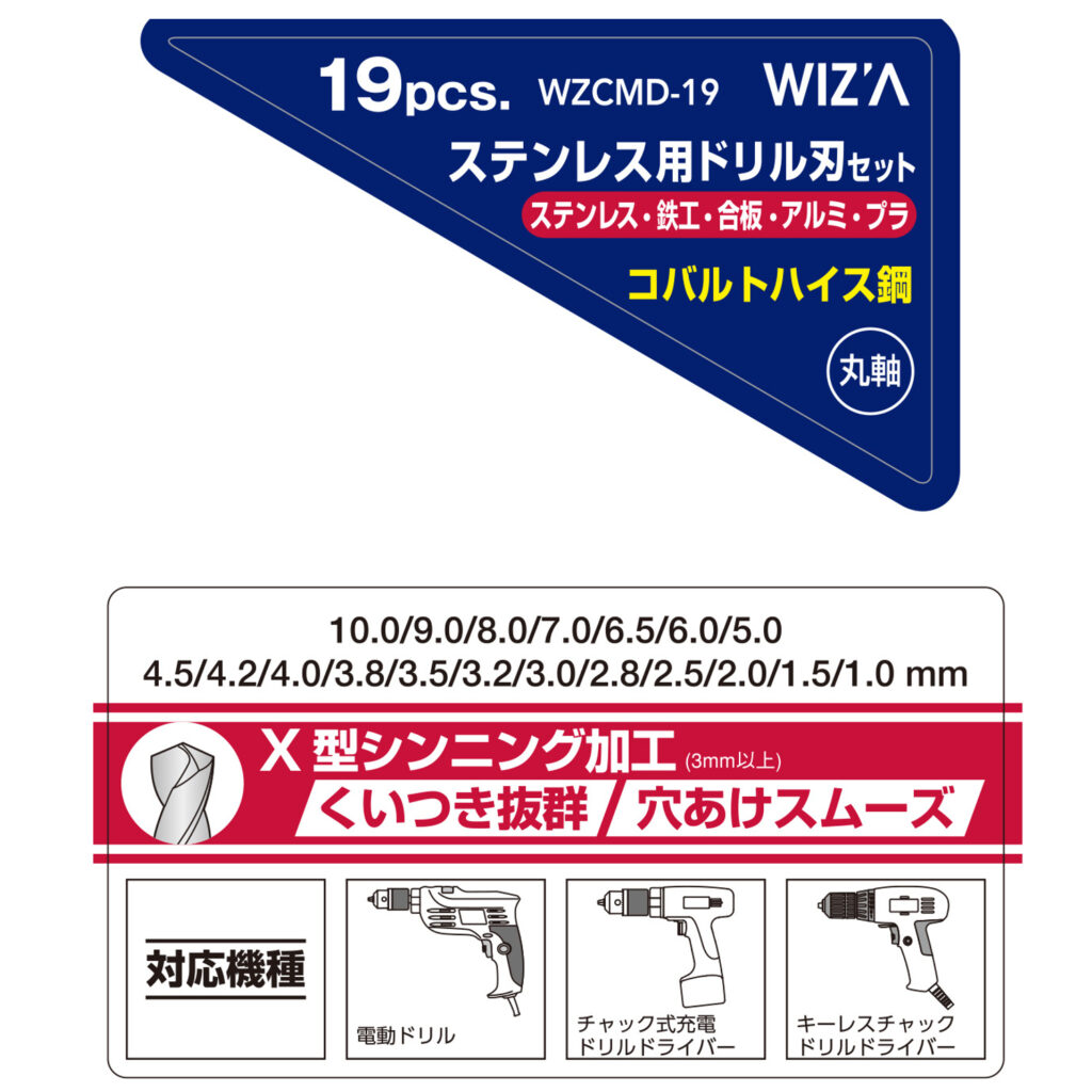 ステンレス用コバルトドリル刃セット 19PC WZCMD-19