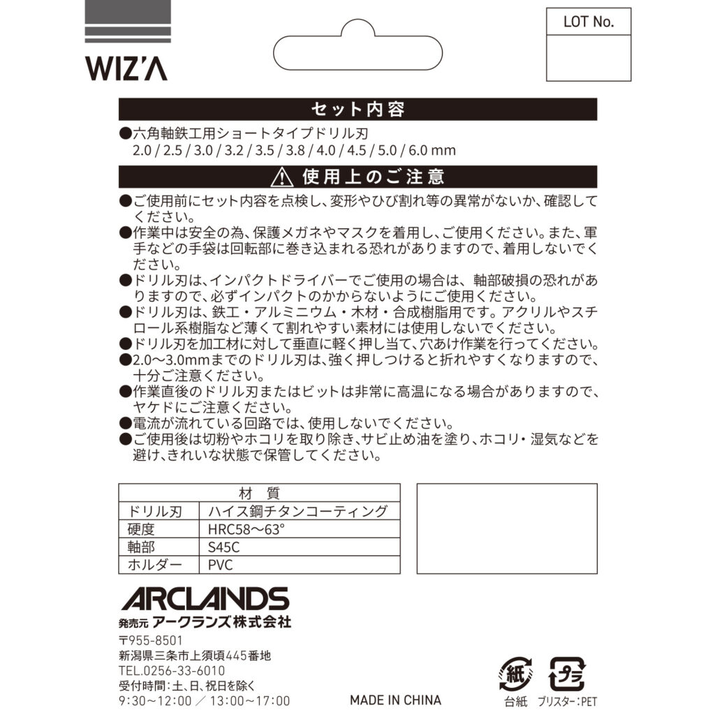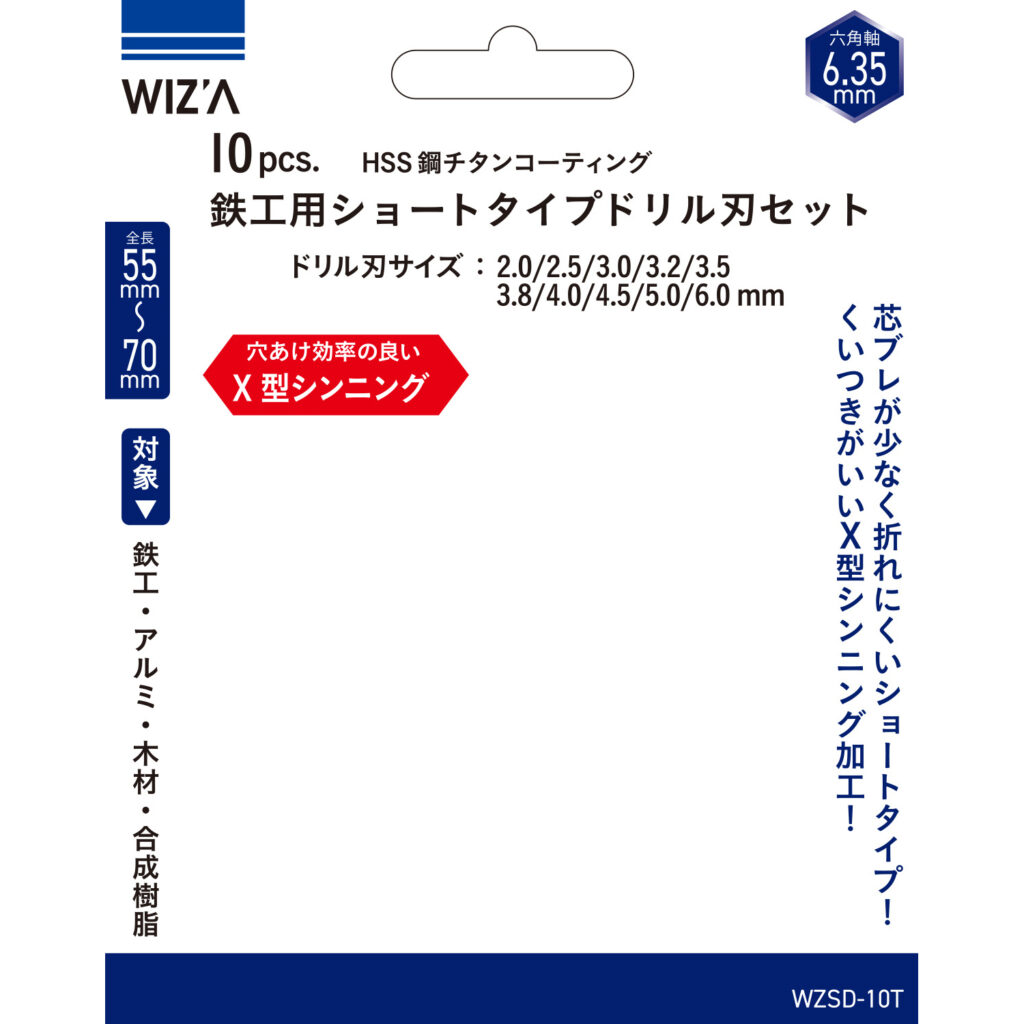 六角軸 鉄工用ショートタイプドリル刃セット チタンコーティング 10PC WZSD-10T