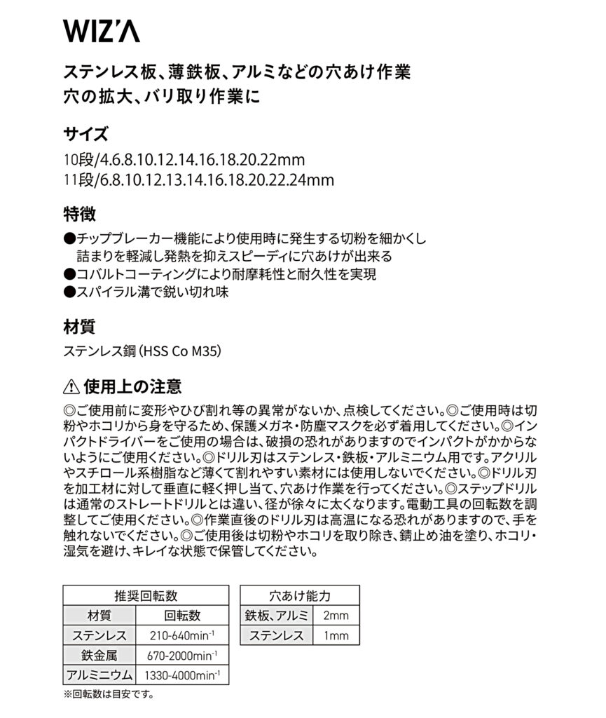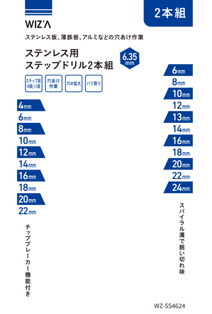 ステップドリル ステンレス用 2PC 10段&11段 WZ-SS4624
