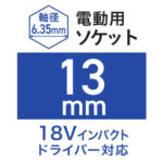 電動用ソケット 13mm WZRM-H13 2024 9/05 WIZ'A 2024.09.05 × 電動用ソケット 13mm WZRM-H13ブランド:WIZ'A JANコード:4904781398423商品コード:478139842規格・品番:WZRM-H13商品サイズ(mm)縦86 x 横19 x 高さ19重さ(g)70仕様用途:インパクトドライバーでボルト、ナットの締付け、緩め サイズ:13mm 全長:86mm 18Vインパクトドライバー対応商品コメント18V対応の高トルク耐久仕様です。同じカテゴリーの商品強軸ソケット 24mm ETS-24ACソケットアダプター 6.35mm SA-635 強軸ソケット 16mm ETS-16AC強軸ソケット 22mm ETS-22AC強軸ソケット 21mm ETS-21ACソケットアダプター 12.7mm SA-127 ソケットアダプター 9.5mm SA-95 強軸ソケット 10mm ETS-10AC WIZ'A 電動用ソケット 12mm WZRM-H12 六角棒ビットセット ブラック 100mm 6PC WZH-6-100