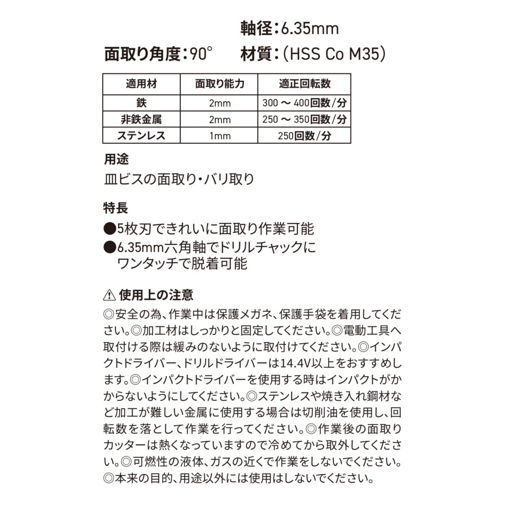 六角軸 5枚刃面取りカッター 鉄工用 8mm WZ-CS8