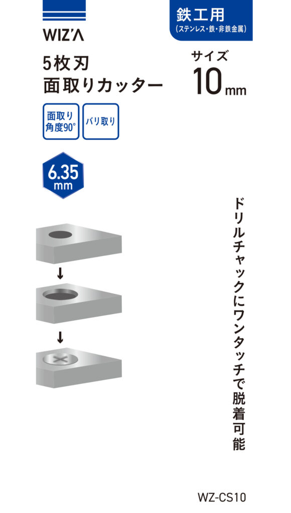 六角軸 5枚刃面取りカッター 鉄工用 10mm WZ-CS10