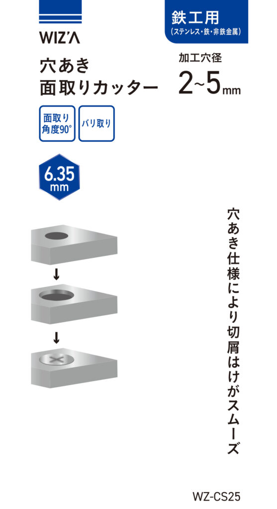 六角軸 穴あき面取りカッター 鉄工用 2~5mm WZ-CS25