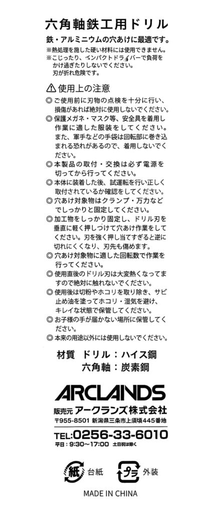 六角軸 鉄工用ドリル 3.3mm WZ-7ID-3.3