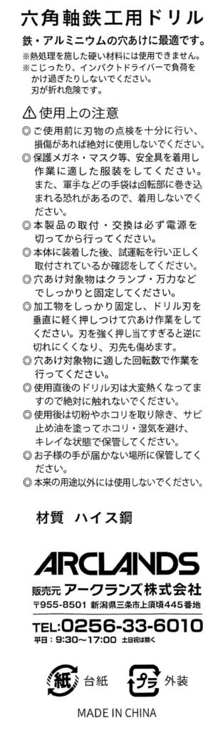 六角軸 鉄工用ドリル 8.0mm WZ-7ID-8.0