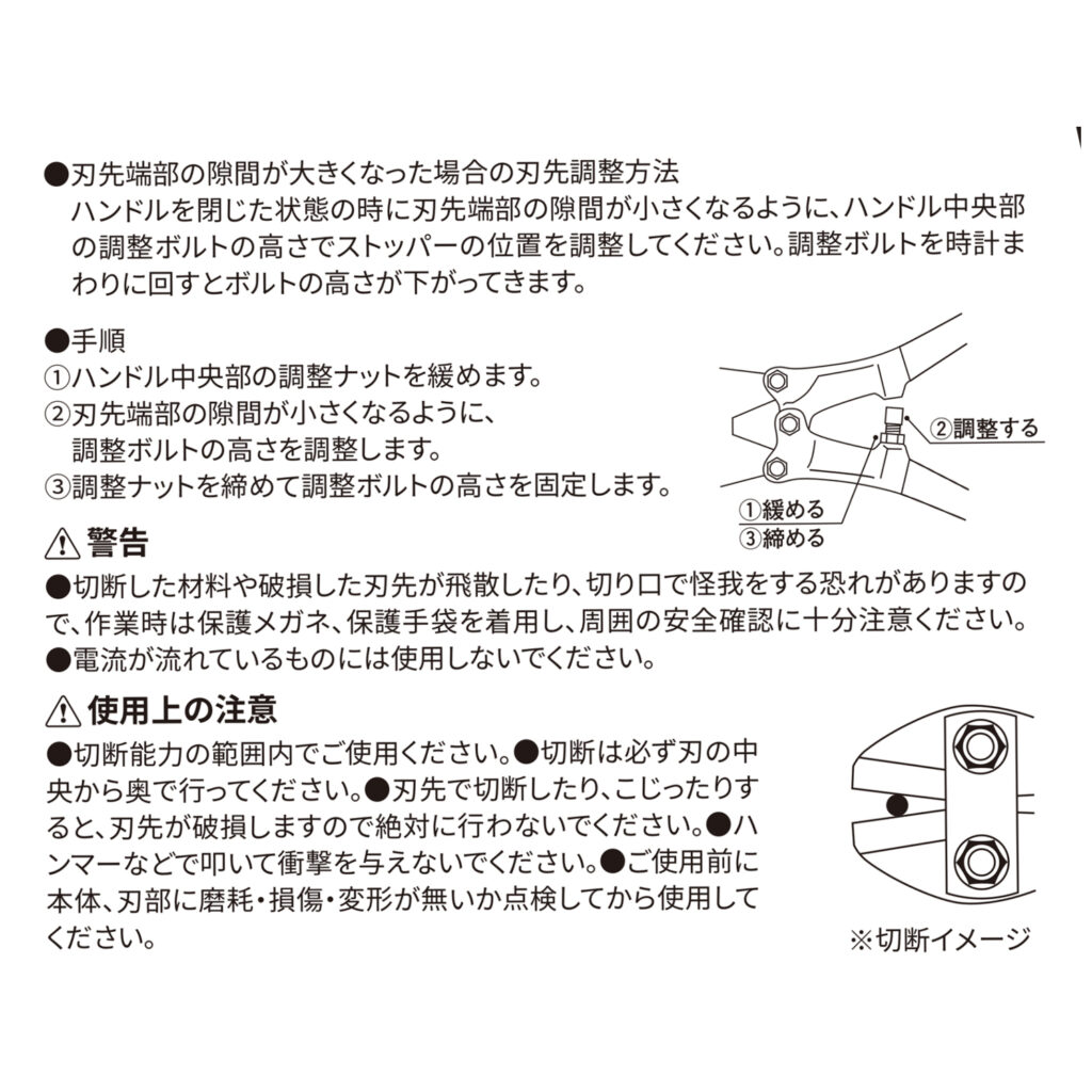 ボルトクリッパ 300mm GTBC-300 2024 8/15 WIZ'A 2024.08.15 × ボルトクリッパ 300mm GTBC-300ブランド:WIZ'A JANコード:4904781078400商品コード:X21302規格・品番:GTBC-300商品サイズ(mm)縦330 x 横133 x 高さ25重さ(g)768仕様用途:軟鋼線材、棒鋼などの切断 最大切断能力:軟鋼線材5mm商品コメント金網の切断などに使用出来ます。同じカテゴリーの商品コンビネーションプライヤー 150mm WZ-CP150パイプレンチ 300mm GTPW-300 クイックモンキーレンチ 250mm WZ-QM250エンビカッター 42mm薄型 ワイド ショートモンキー 120mm GTSM-120ボルトクリッパ 350mm GTBC-350 ワンタッチパイプカッター 替刃 GTPC-WB ワンタッチパイプカッター 6mm~64mm GTPC-0664 WIZ'A フックカラビナ Sサイズ 120mm ボルトクリッパ 350mm GTBC-350