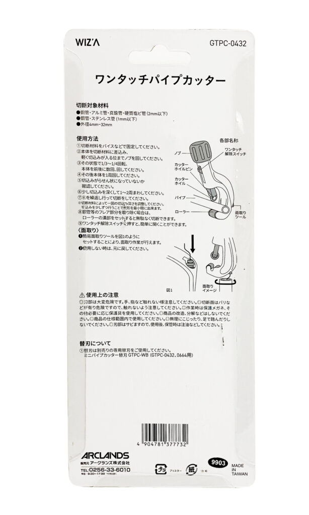 ワンタッチパイプカッター 4mm~32mm GTPC-432