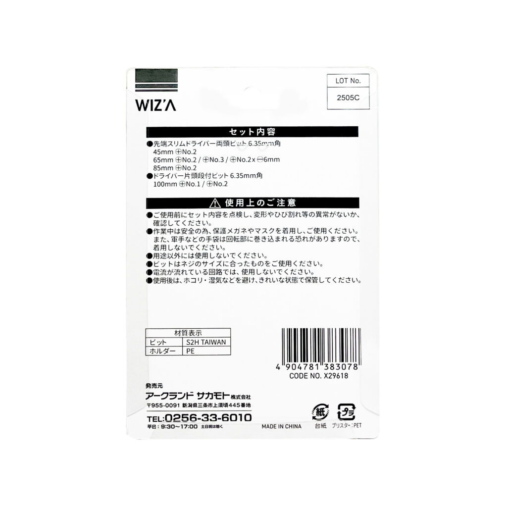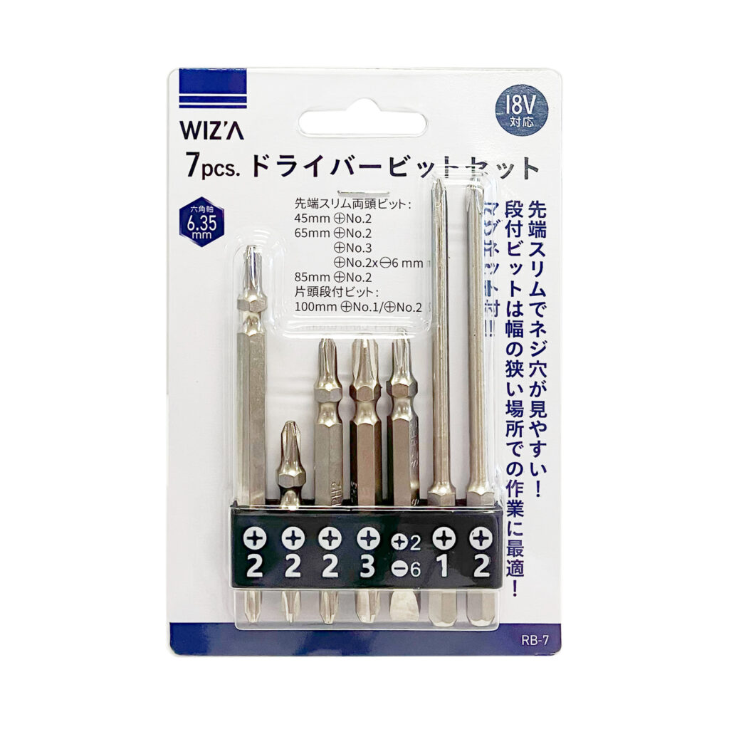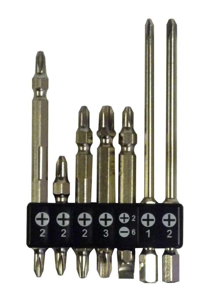 セット内容/〔先端スリムドライバー両頭ビット6.35mm角:45mm×+No.2、65mm×+No.2、65mm×+No.3、65mm×+No.2×-6mm、85mm×+No.2〕、〔ドライバー片頭段付ビット6.35mm角:100mm×+No.1、100mm×+No.2〕