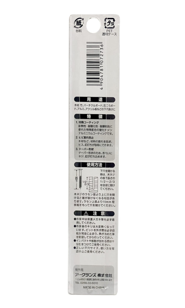 用途:木材、竹、石こうボ-ド等の下穴あけ