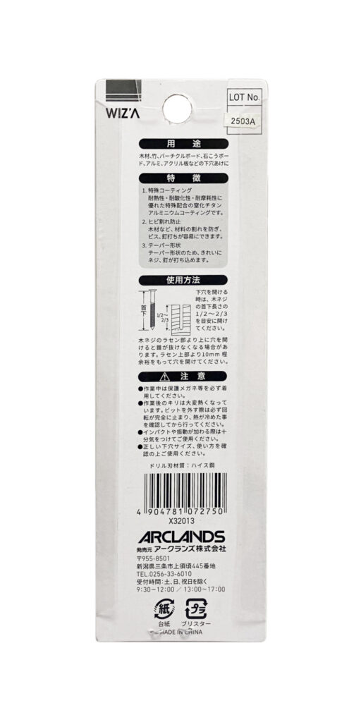 用途:木材、竹、石こうボ-ド等の下穴あけ