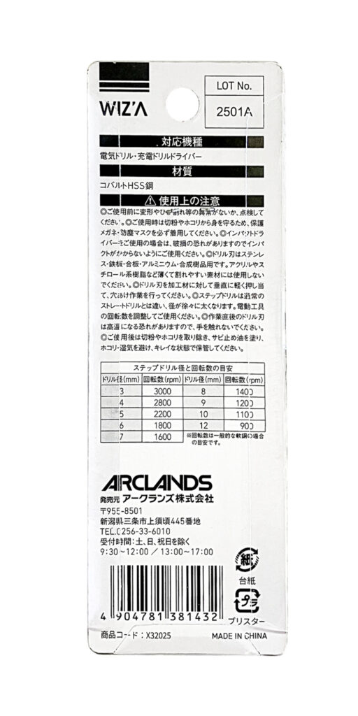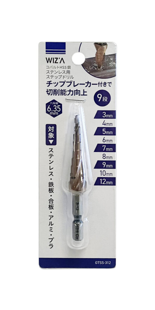 ステップドリル ステンレス用 9段 GTSS-312 2024 9/05 WIZ'A 2024.09.05 × ステップドリル ステンレス用 9段 GTSS-312ブランド:WIZ'A JANコード:4904781381432商品コード:X32025 規格・品番:GTSS-312商品サイズ(mm)-重さ(g)-仕様用途:ステンレス板、薄鉄板、アルミ等の穴あけ 段数:9段 サイズ:3・4・5・6・7・8・9・10・12mm商品コメントチップブレーカー付きで切削能力が向上しました。同じカテゴリーの商品六各軸 鉄工用ロングドリル 3.5mm WZD-3.5Lステップドリル ステンレス用 11段 GTSS-624六角軸 5枚刃面取りカッター 鉄工用 6mm WZ-CS67枚刃ステップドリル5段 0311六角軸 ショート ステンレス・鉄工用ドリル 6.5mm GTSD-6.5ステップドリル ステンレス用 10段 GTSS-422チタンコーティング 鉄工用ドリル刃 6.0mm GTTD-60チタンコーティング 鉄工用ドリル刃 4.0mm GTTD-40 WIZ'A 木工用ショートビット 10.5mm GTST-105 ステップドリル ステンレス用 10段 GTSS-422