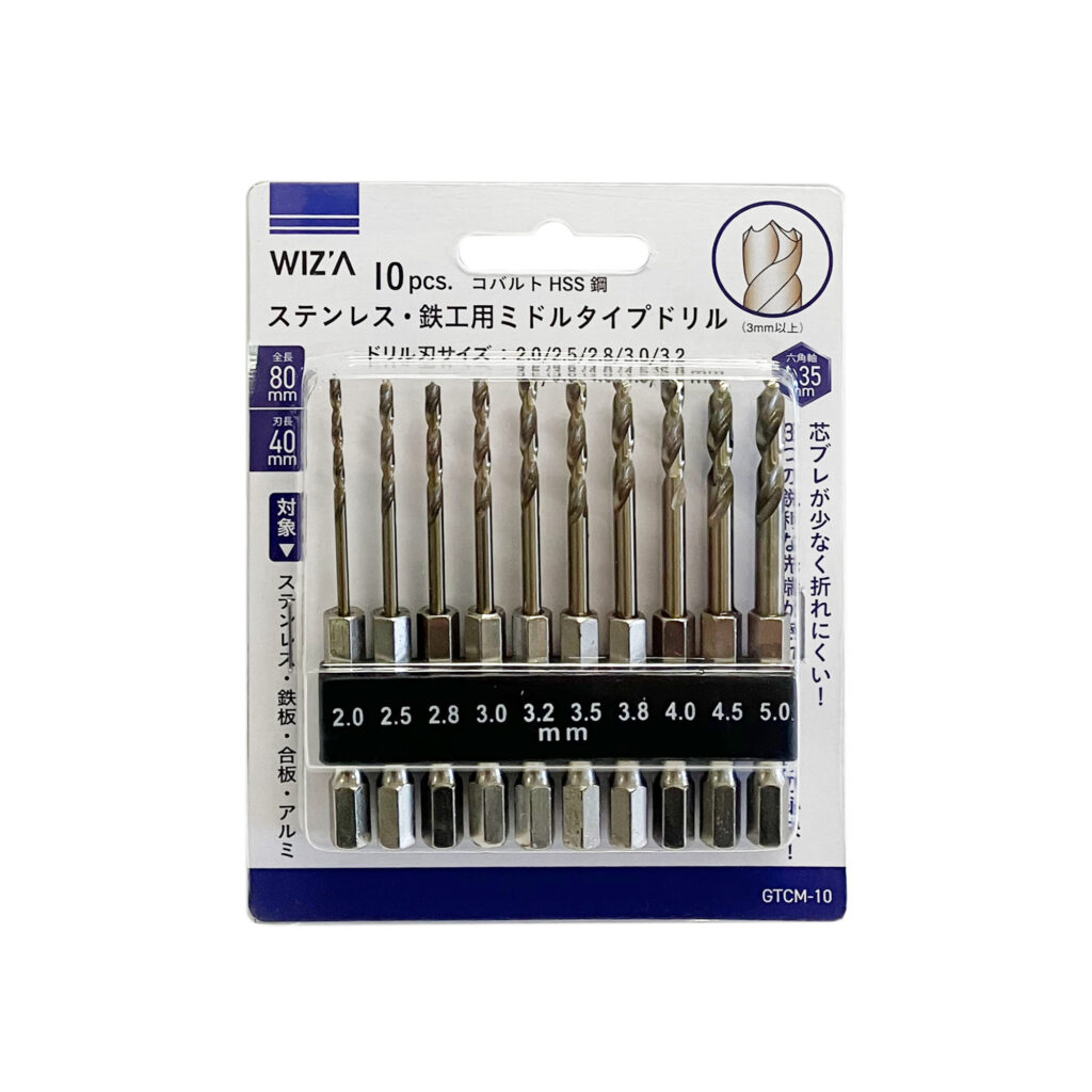 六角軸 ステンレス用ミドルサイズコバルトドリル 10PC GTCM-10